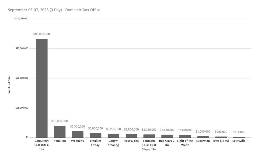 “The Conjuring: Last Rites” summoned a massive $83 million debut, completely dominating the weekend box office. The Warner Bros. horror sequel scared up more than eight times the earnings of the second-place film, solidifying the power of the long-running franchise.